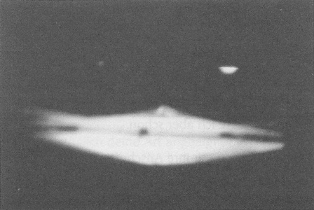 In PPKB 2 on page 39 the following two pictures are included which Meier allegedly made of the beamship(s?) from other dimension. These pictures are a part of the collection of 42 space photos of which around 2001 ‘it was strictly ensured, with the help of Ptaah, that it only concerned “Billy’s” genuine pictures or his pictures that were only slightly falsified’.