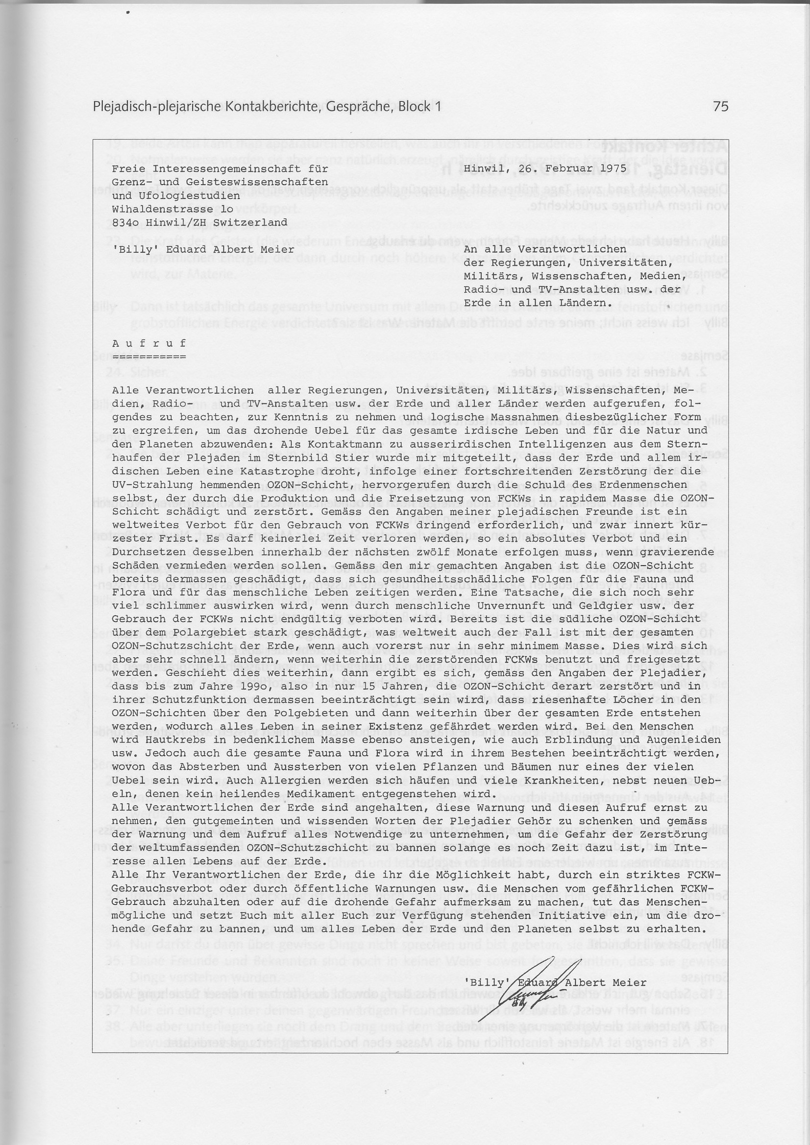 Semjase Kontakt Berichte, 2nd ed. Block 1, pg. 341-347, 1987